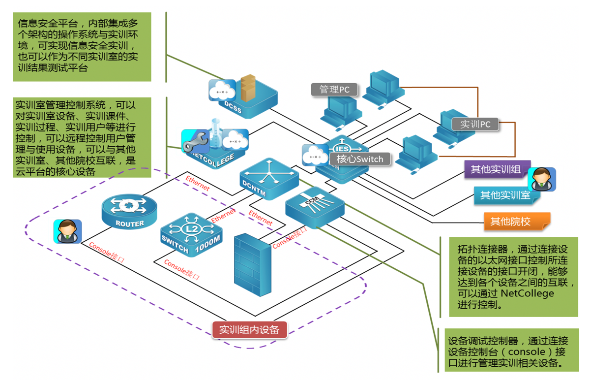 可实现任意连接端口数据镜像指指定接口,实现数据监听,丰富教学手段和内容,提升教学质量。 |